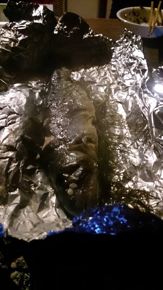 14時まで泳いだた岩魚も、お腹にフェンネルを入れてホイル焼きをすると、