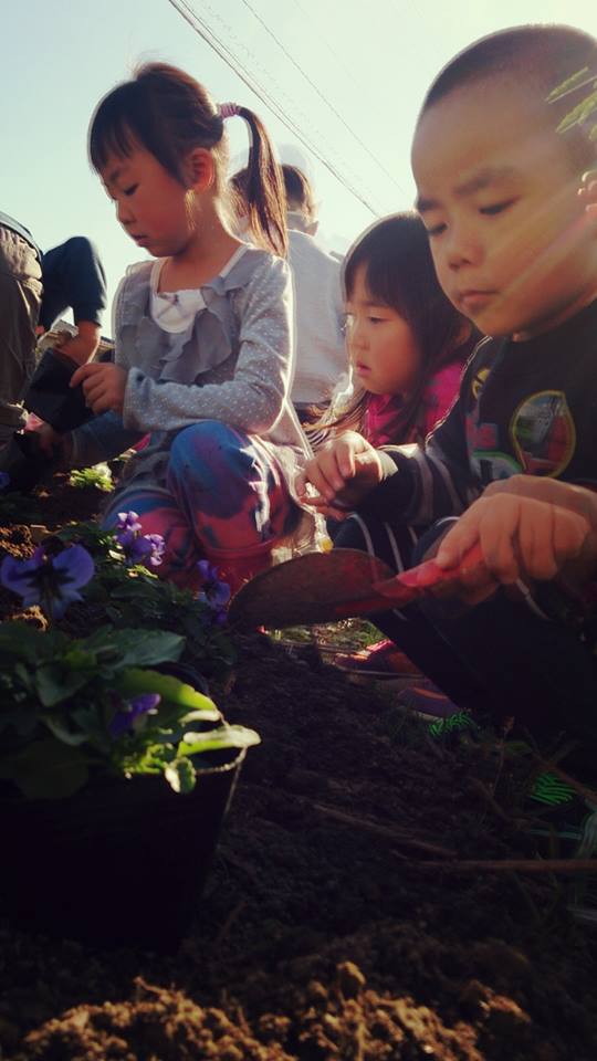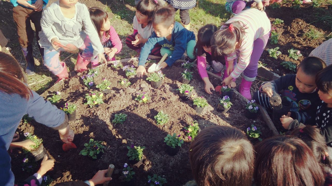 幼稚園でパンジー植えたよー☆