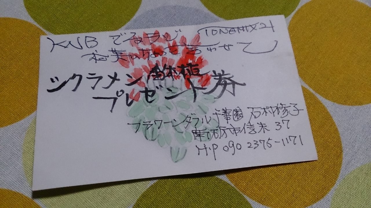 先週のKNBラジオ生出演の際にご提供しましたシクラメンプレゼントの当選者が