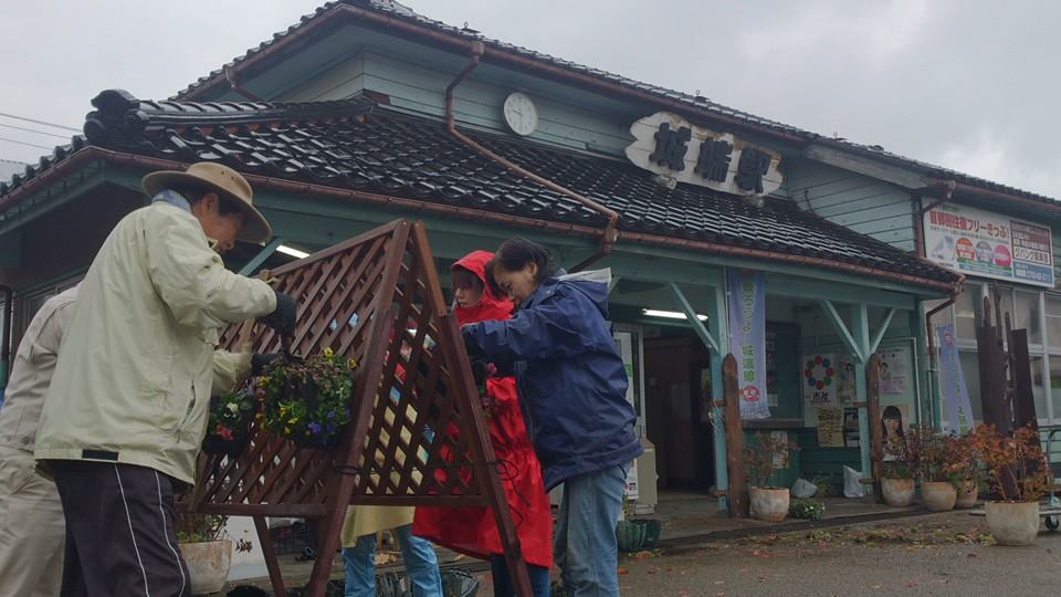 城端駅を利用される観光客を、「花でおもてなし」をしようと市民協働で、行っています。