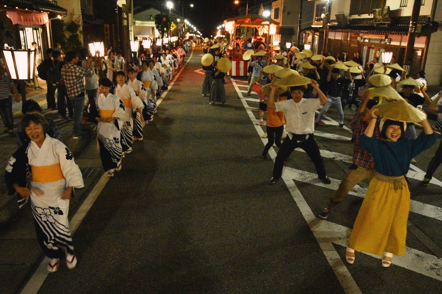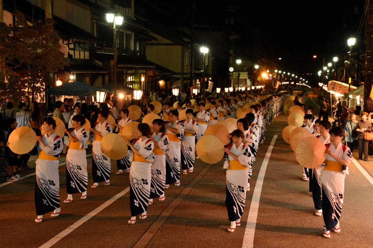 麦屋節にあわせて踊り練り歩く大行列は見事の一言。