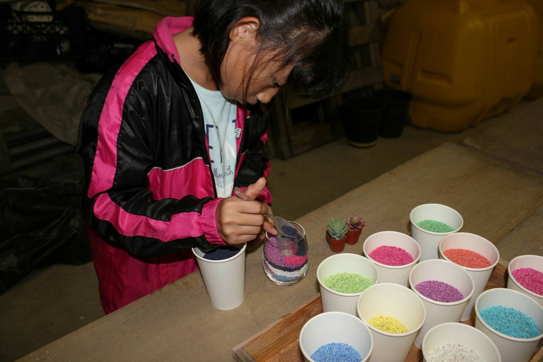 「カラーサンドを使って多肉植物の寄せ植え」を作りましたが、