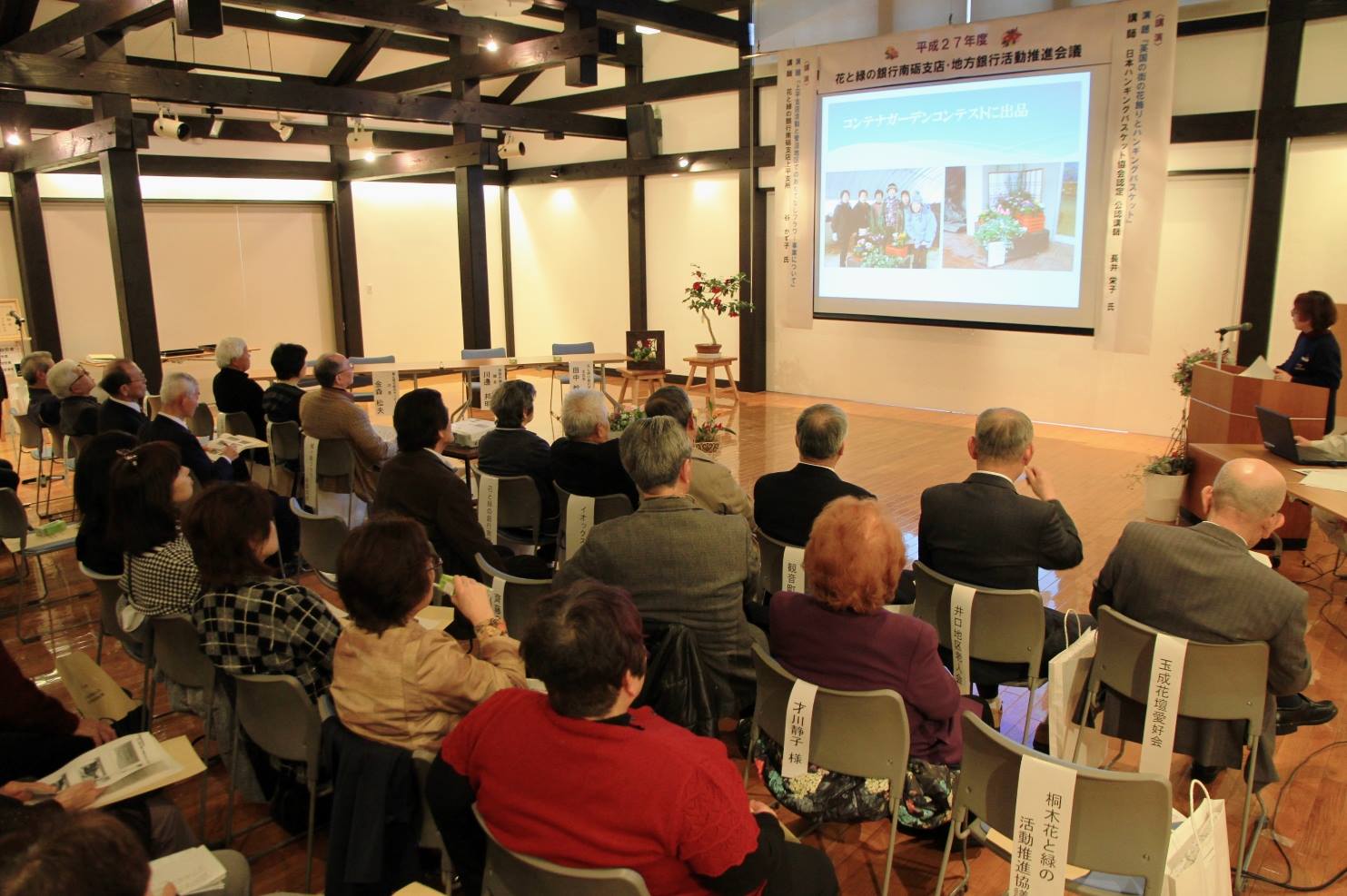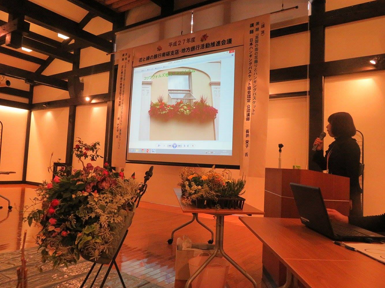 「英国の街の花飾りとハンギングバスケット」と題した講演会が行われ、