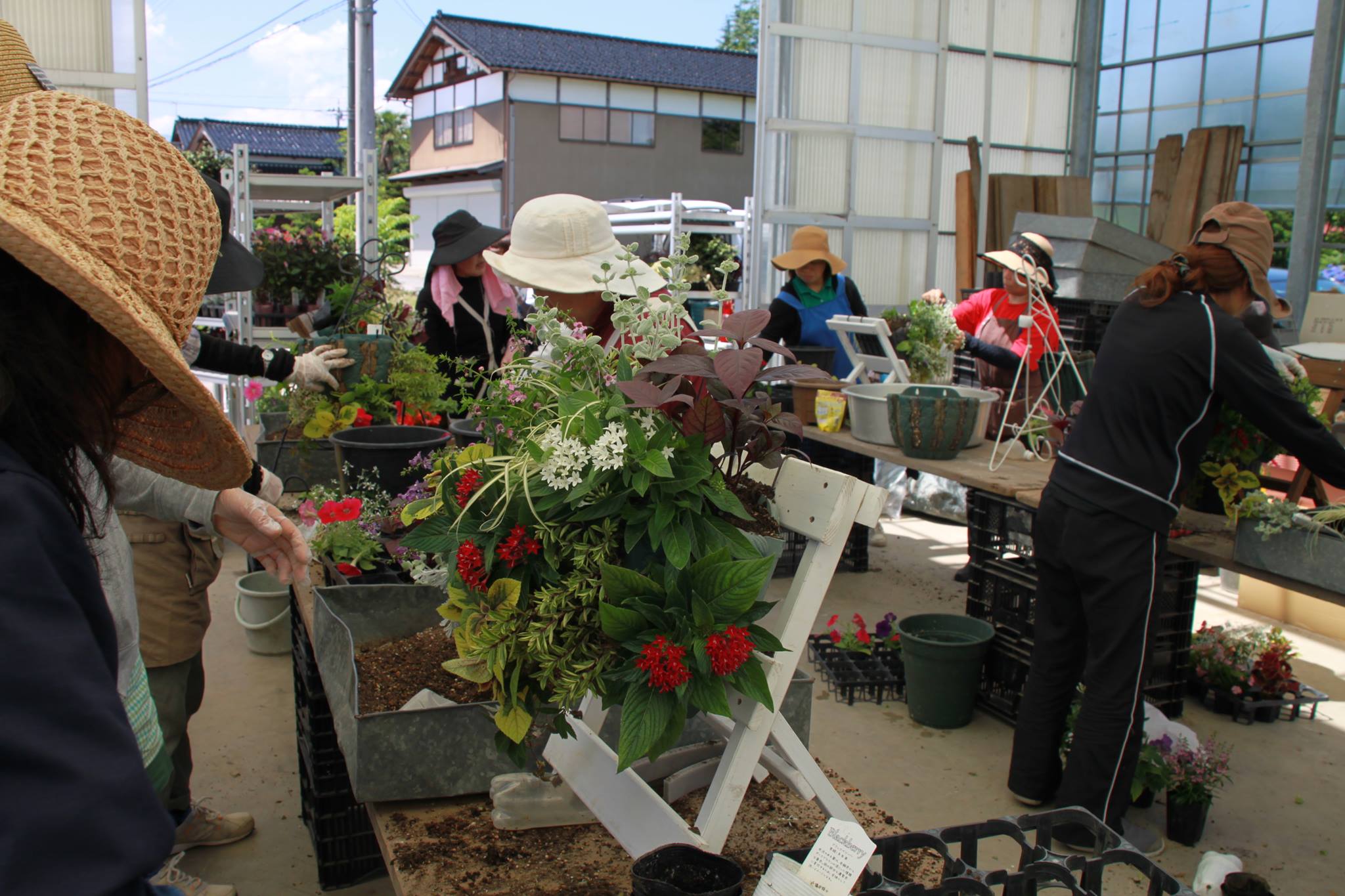 菅沼集落にてハンギングバスケットや寄せ植えの特別展
