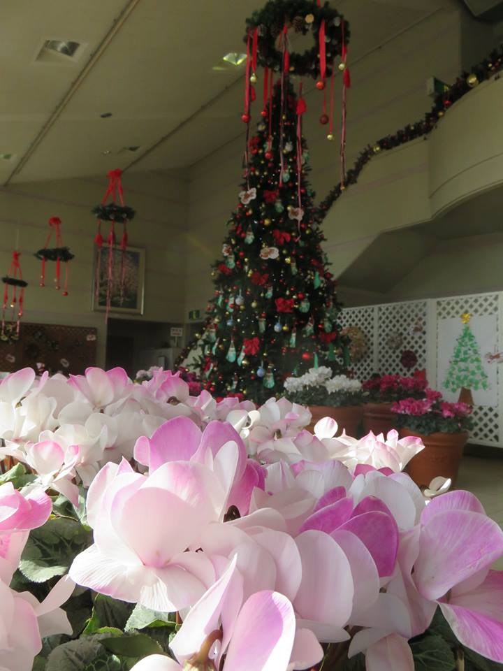クリスマスには優しい色合いのシクラメンが