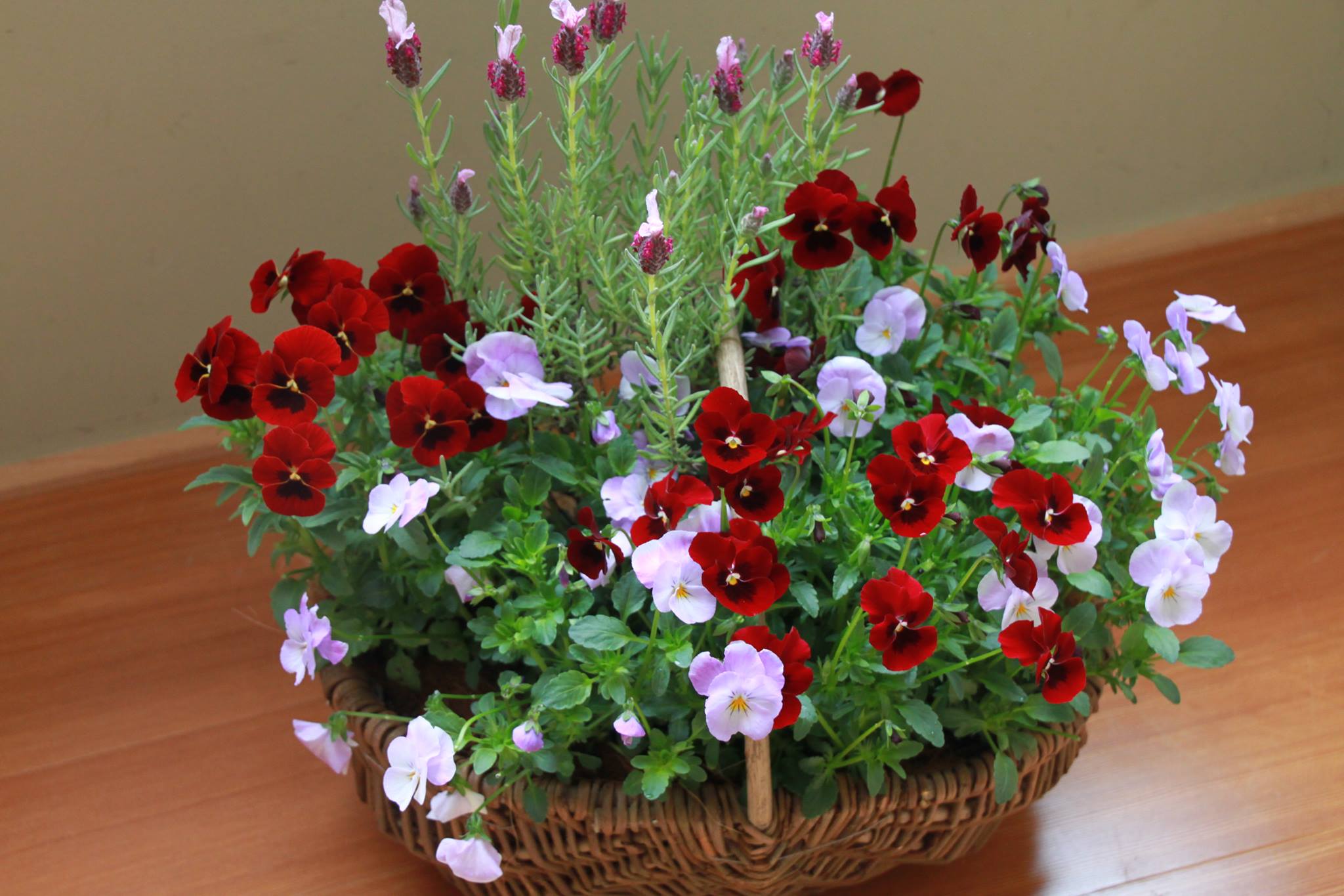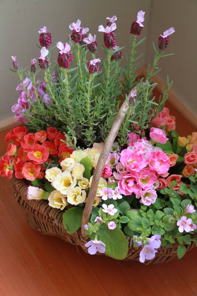 製作した寄せ植えを眺めていても、