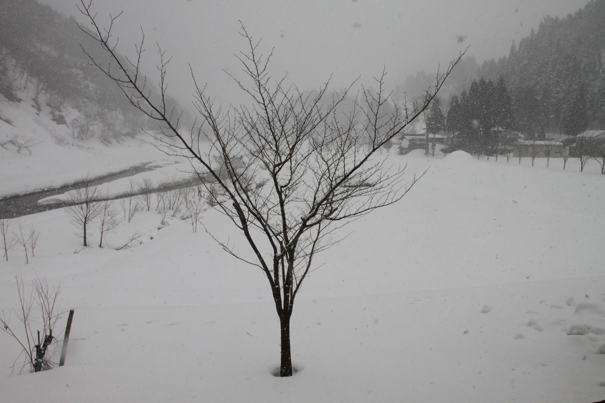 まだまだ外は降りしきる雪の中、