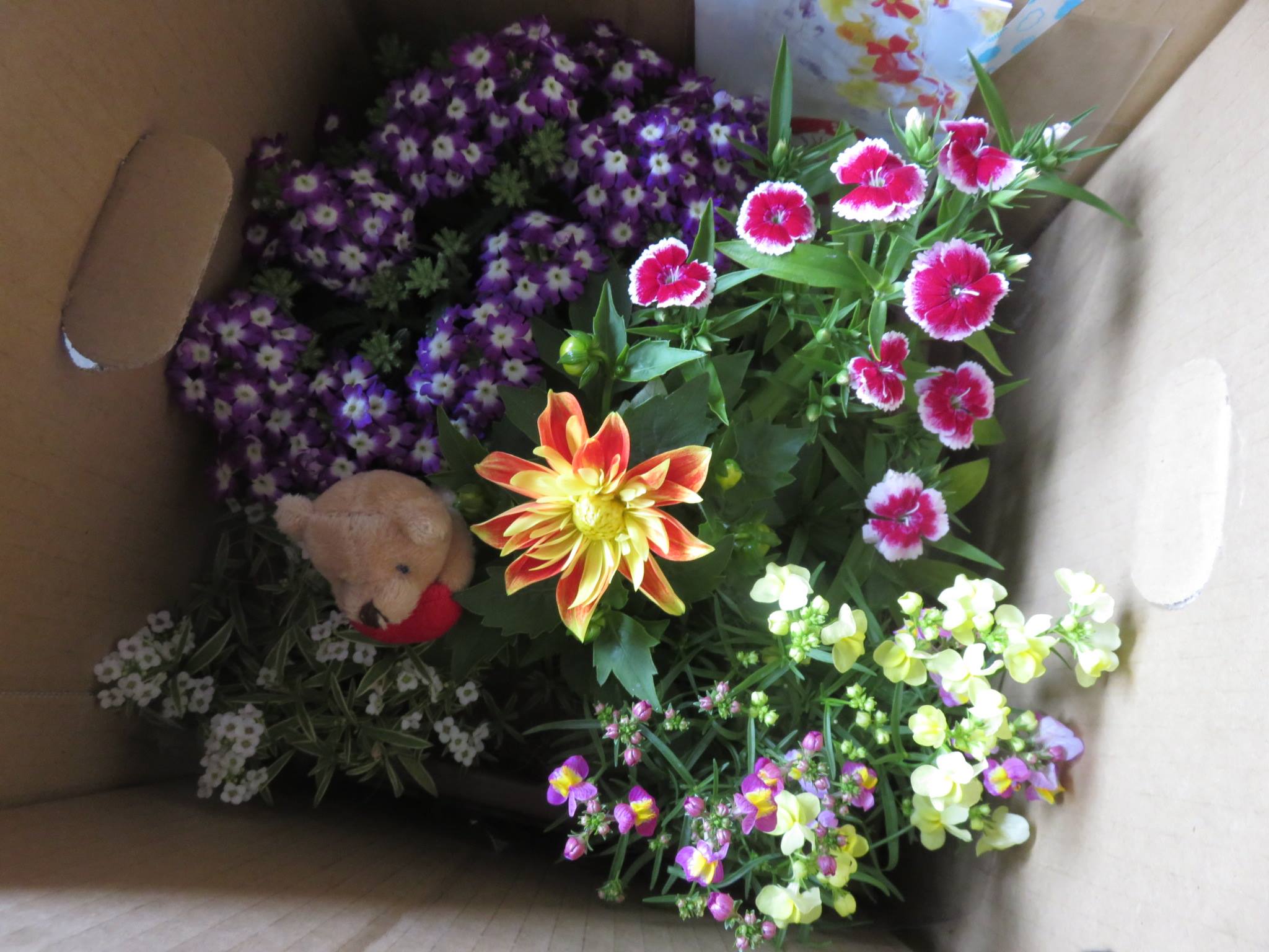 美食花の寄せ植え鹿児島へ発送♪ 2017年4月23日エディブルフラワー「美食花」 フラワーンダフル日記 寄せ植え作品 Tweet 鹿児島から 美食花の寄せ植えのご依頼がありましたので、 発送しました☆ クマさんも長旅、 お供します!!(≧▽≦)♪ エディブルフラワーの苗、 大人気です☆ 昨日も、 再度、花苗をご注文下さった際に お客様より メッセージを頂きました☆ 「いつも心温まるメッセージ取扱書にも感動しています。」 季節が変わって 再びお花のご注文を頂けた事、 大変嬉しく思います。 また、 そのお客様がお花のある暮らしを 楽しまれている事にも 深く喜びを感じています(´▽`*)