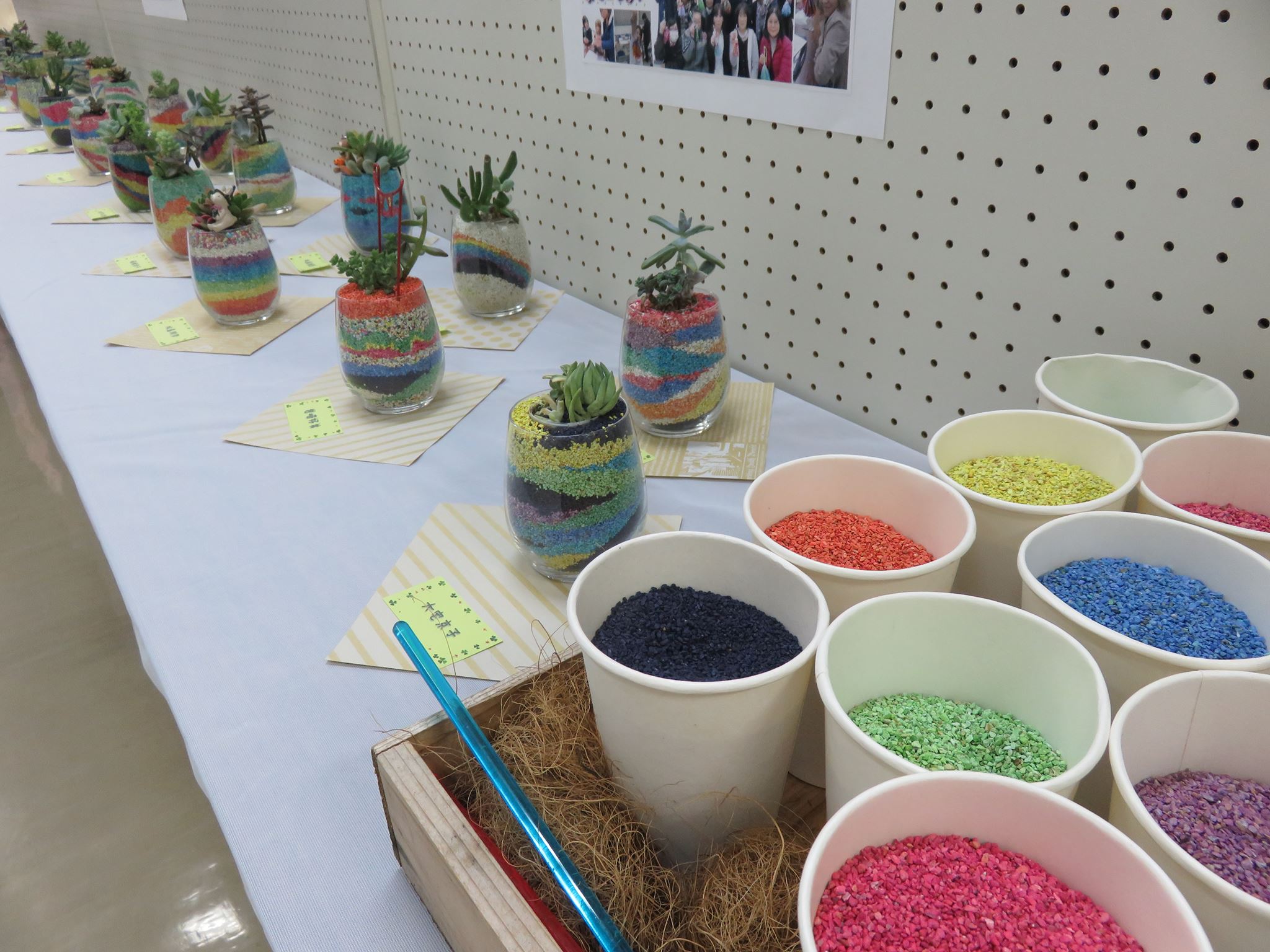 < カラーサンドを使った多肉植物の寄せ植え >