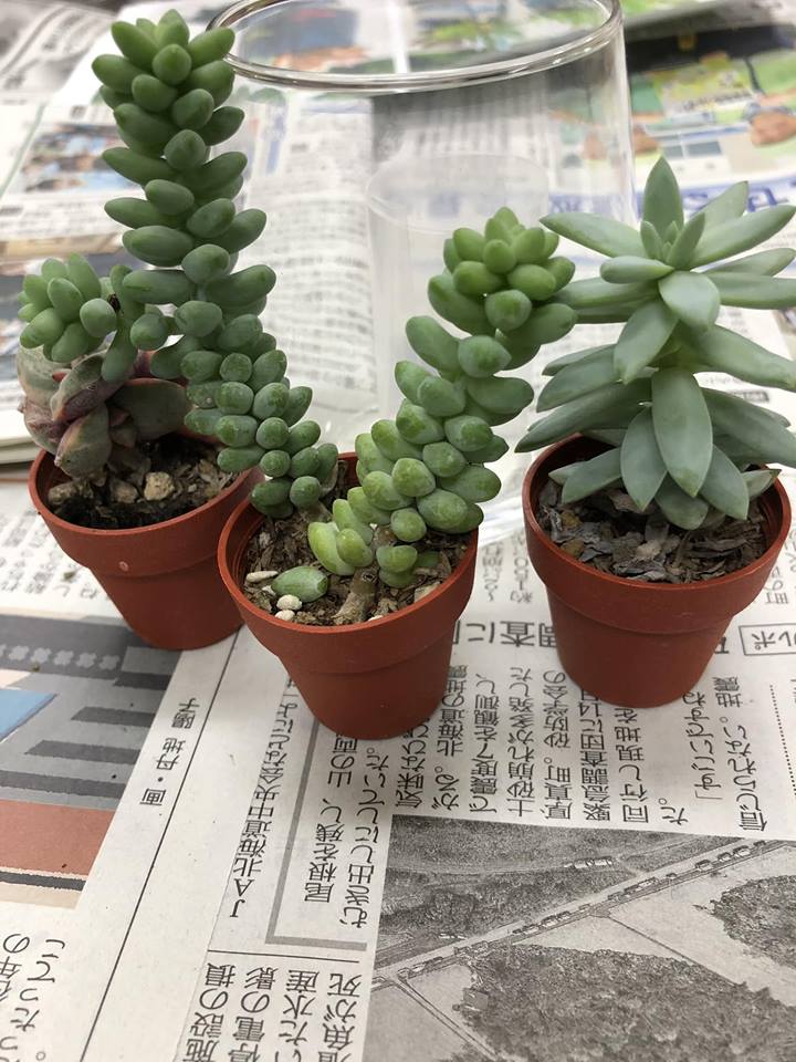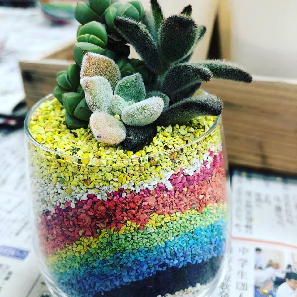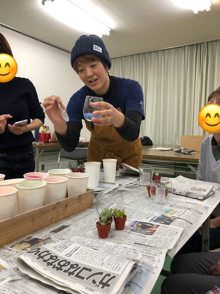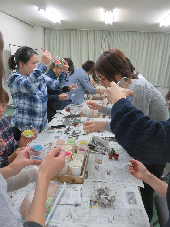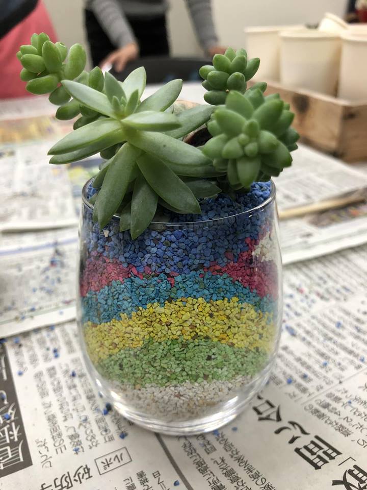 カラーサンドを使った多肉植物の寄せ植え教室♪