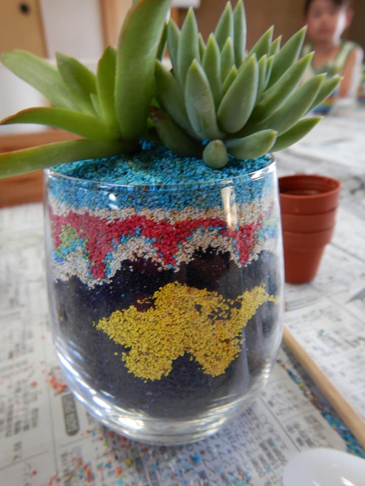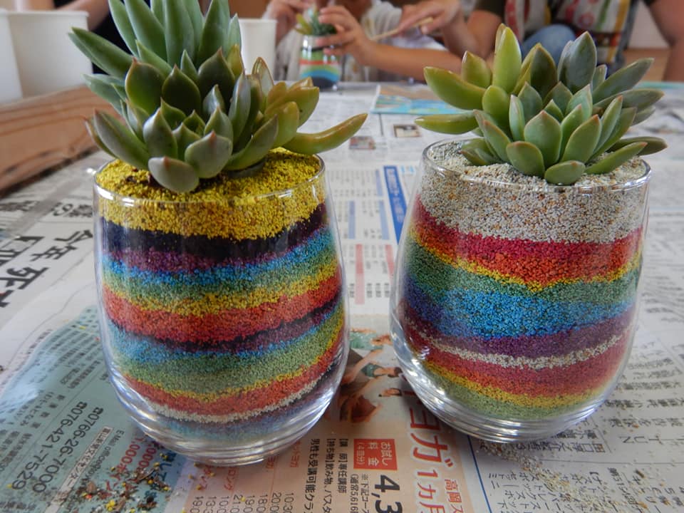 カラーサンドを使った多肉植物の寄せ植え教室🌈