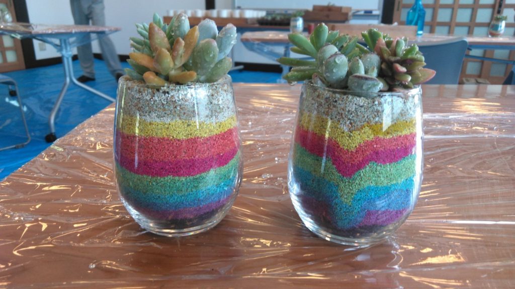 今回は「カラーサンドを使って多肉植物の寄せ植え」