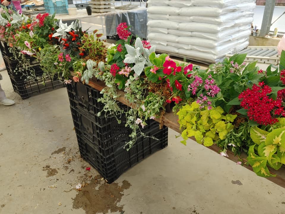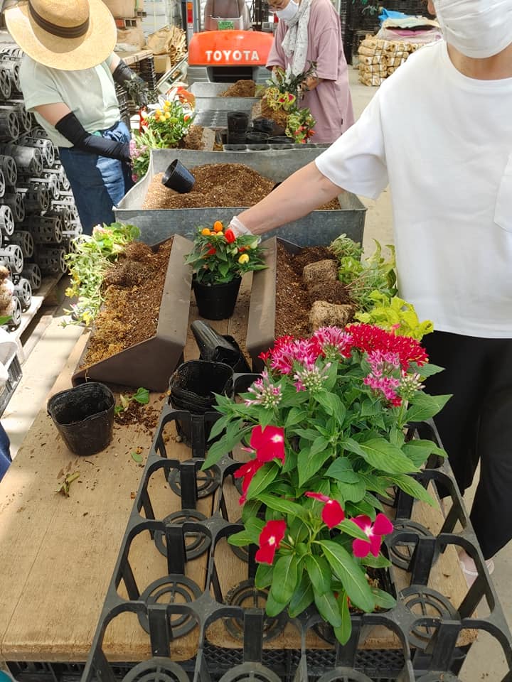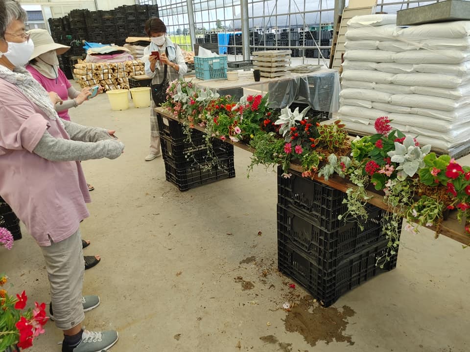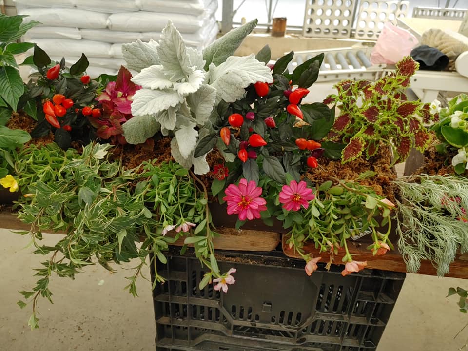 傾斜コンテナを使った寄せ植え作りでした🌸