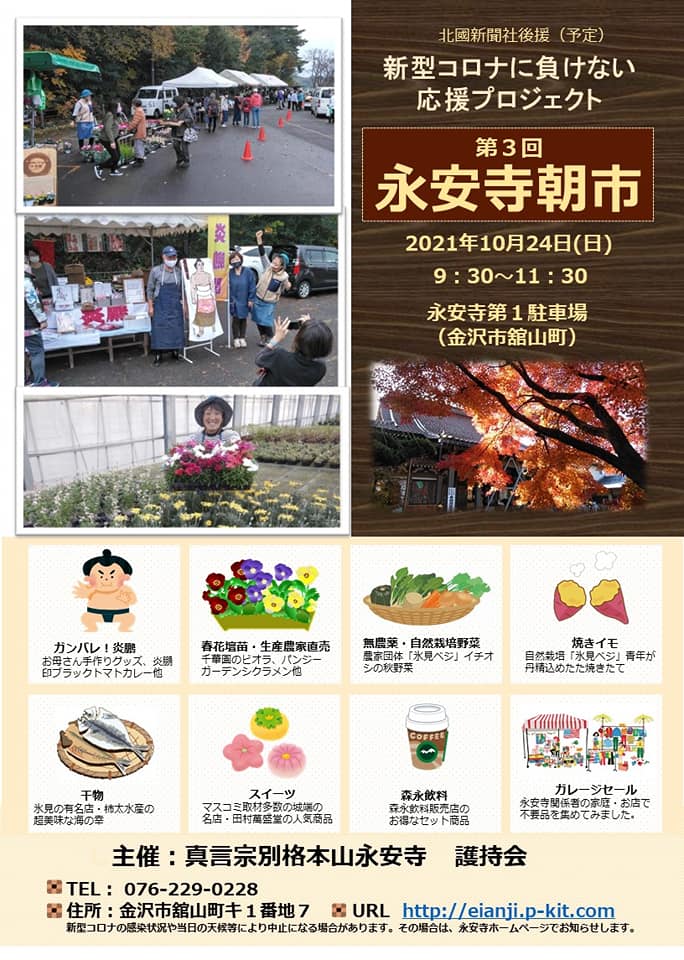 明日は金沢のお寺で朝市です♪