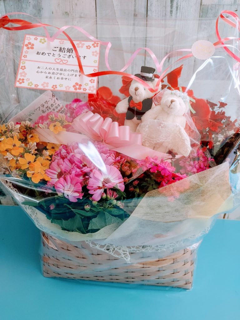 華やかに飾るフラワーギフトになるよう