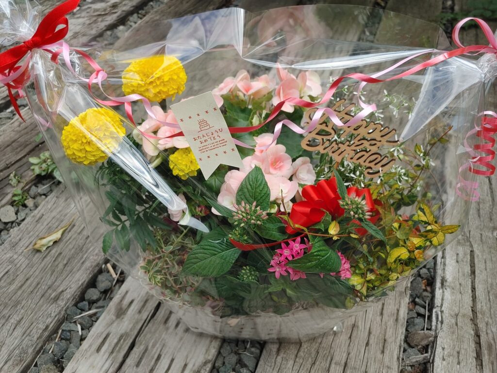 お祝いにフラワーンダフルバスケット🌸 2022年6月26日ギフト フラワーンダフル日記 Tweet 猛暑の夏の暑さの中だからこそ、根っこの付いているフラワーンダフルバスケットのご依頼をいただきます🌸 「町内の皆さんからのご結婚祝い」と「義母のお誕生日のお祝い」 どうぞ益々幸せが根付きますように☆