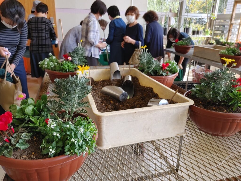 で生産者の寄せ植え教室の