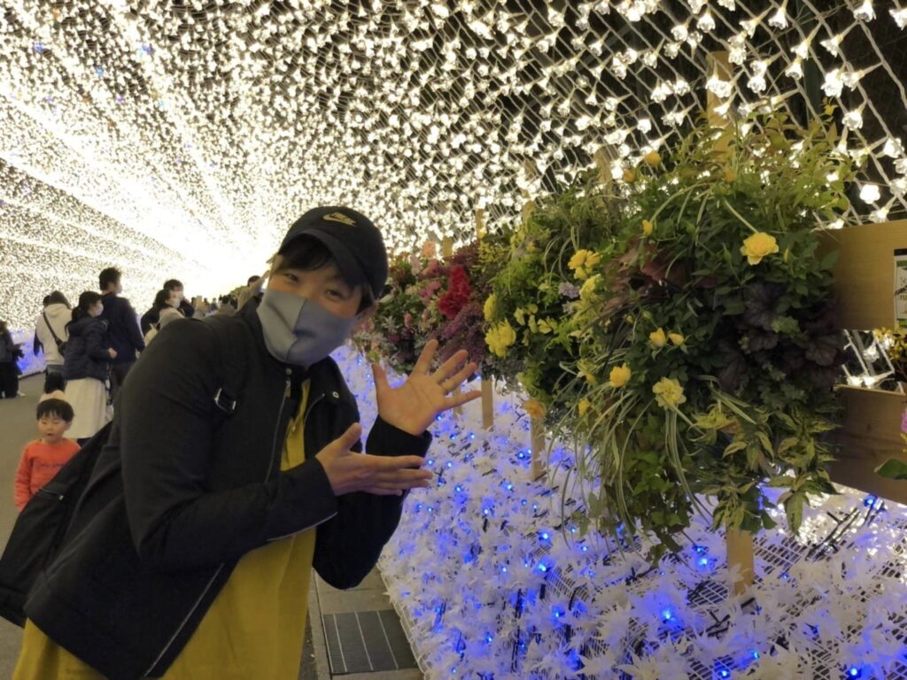 初なばなの里イルミネーション☆ 2022年11月9日イベント フラワーンダフル日記 寄せ植え作品 旅行 Tweet 忘れちゃいませんか~??なばなの里イルミネーション☆ 割り込み日記に本人も忘れそうになっていました(笑) 全国マスター会の日記 ⇒ コチラ 11月6日BIRTHDAYイヴ♡ なばなの里に飾られたハンギングバスケットはじめ、フレーム、コンテナ、多肉植物の200基を超える圧巻の素晴らしい作品に祝福していただきました✨🌉✨ 三重県支部の皆さんの素晴らしい設えに大感激です⭐ありがとうございました(^^)🌸✨ 日本ハンギングバスケット協会HP ⇒ コチラ