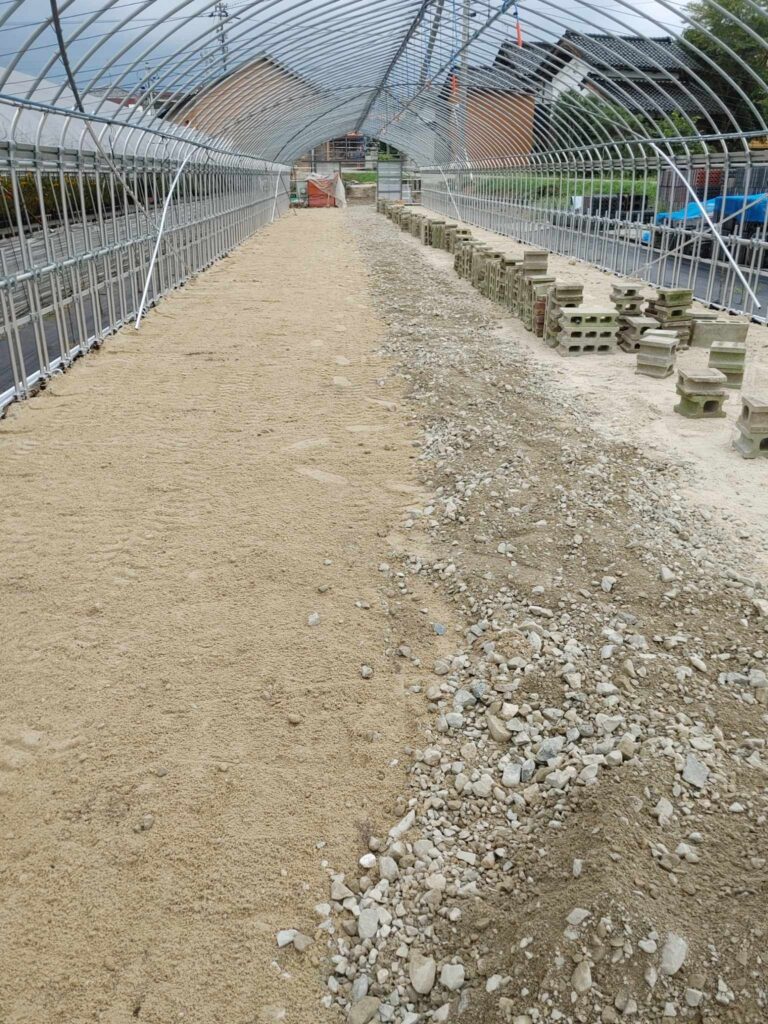 ハウスの砂利敷きの準備が出来たので、