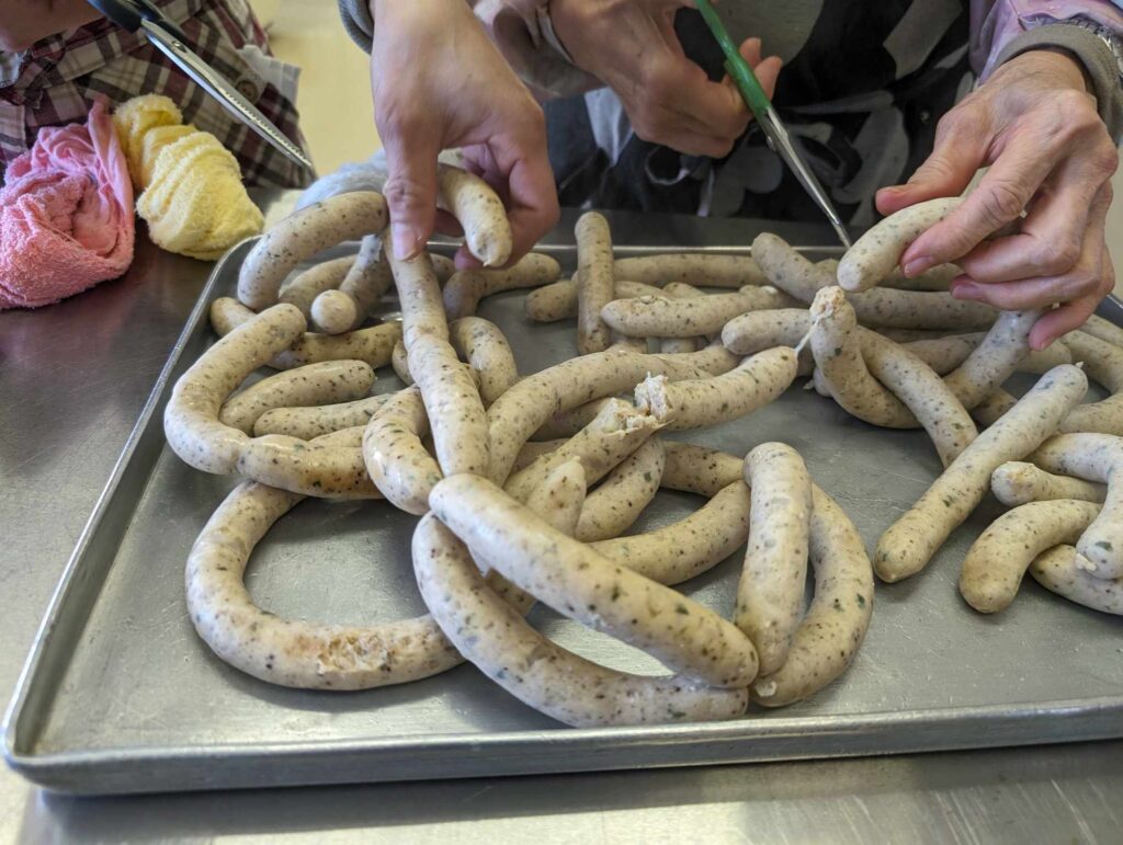 ソーセージ作り♡ 2024年2月15日フラワーンダフル日記 愉快な仲間たち Tweet 今年も中核女性農業士のみんなで城端支部名物のソーセージ作りでした!! 今回は、・プレーン・ごま豆腐・大葉・カレー・バジル・しいたけひじきの6種類の味で楽しみます♪ 城端名物ソーセージ作り ⇒ コチラ