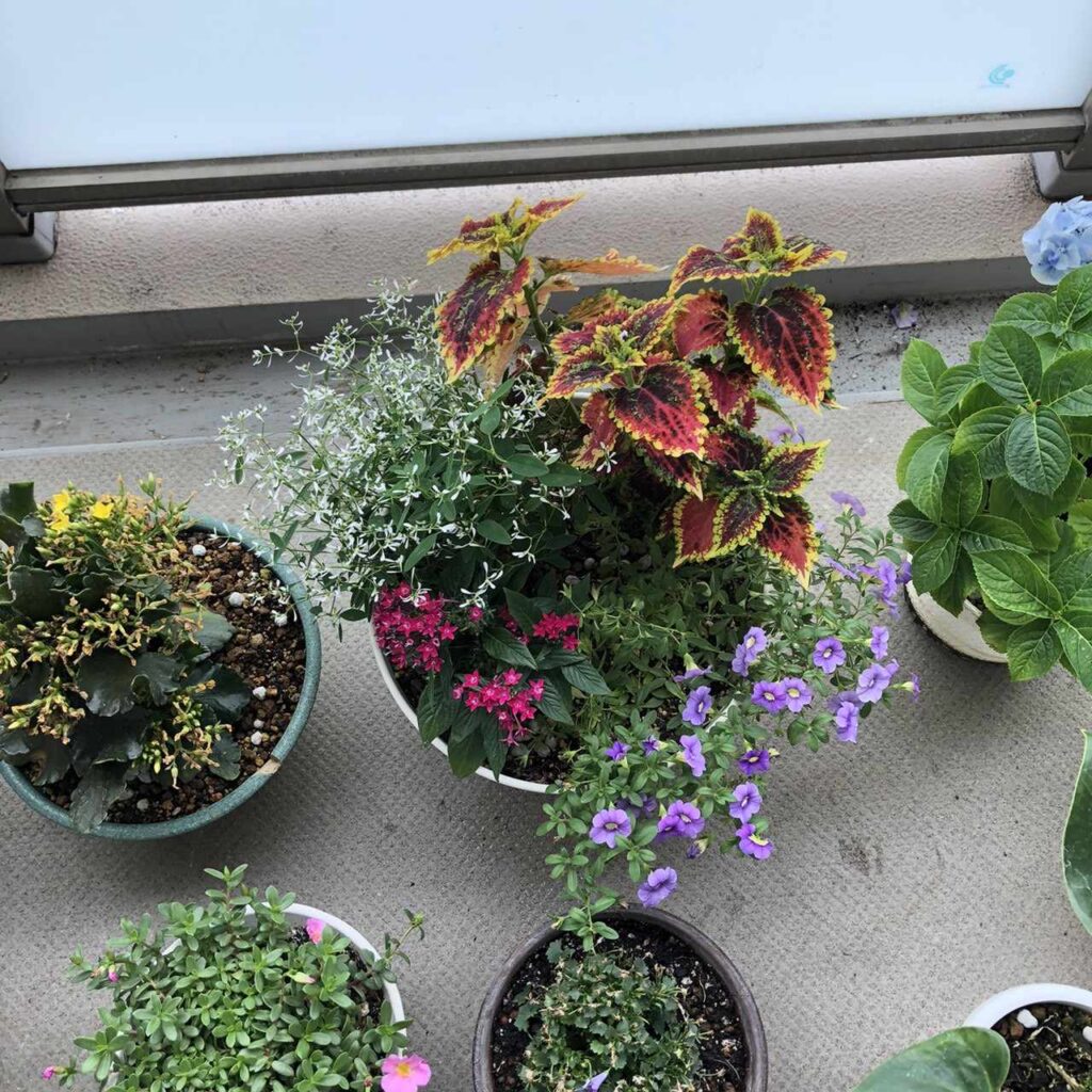 丁寧に寄せ植えされていて、