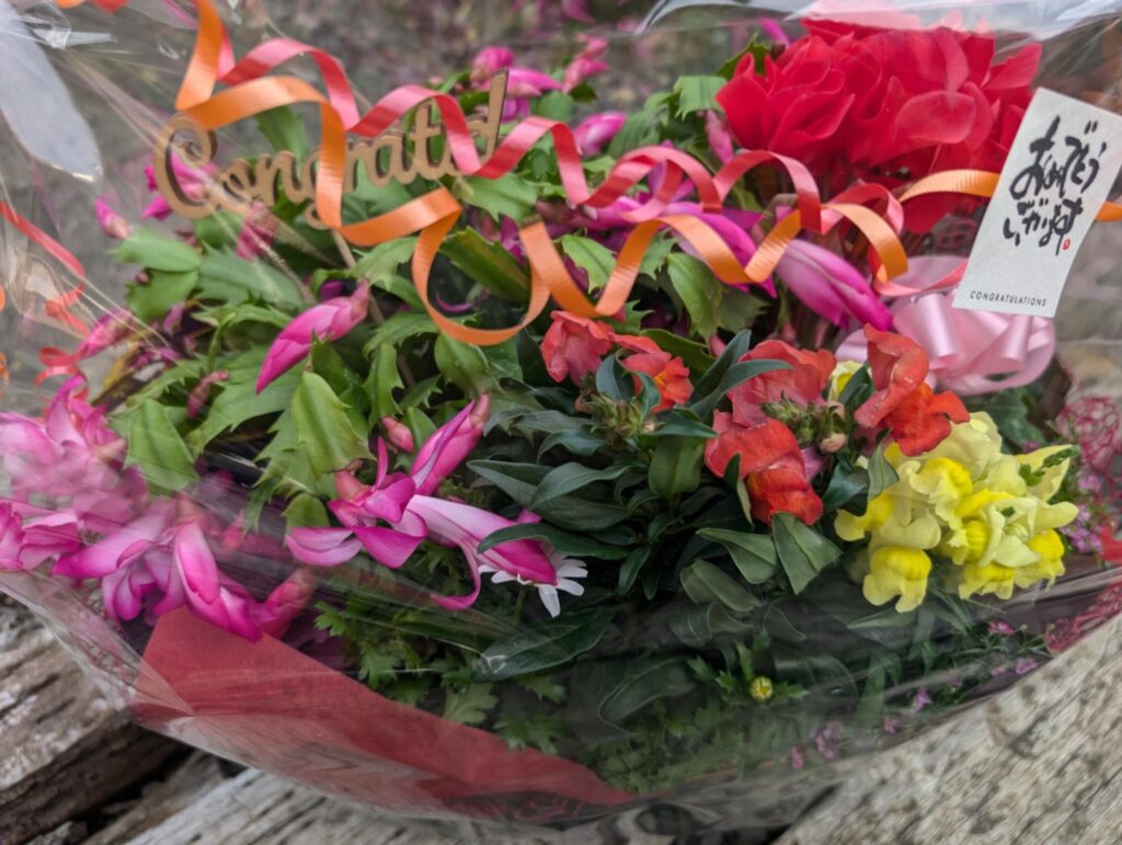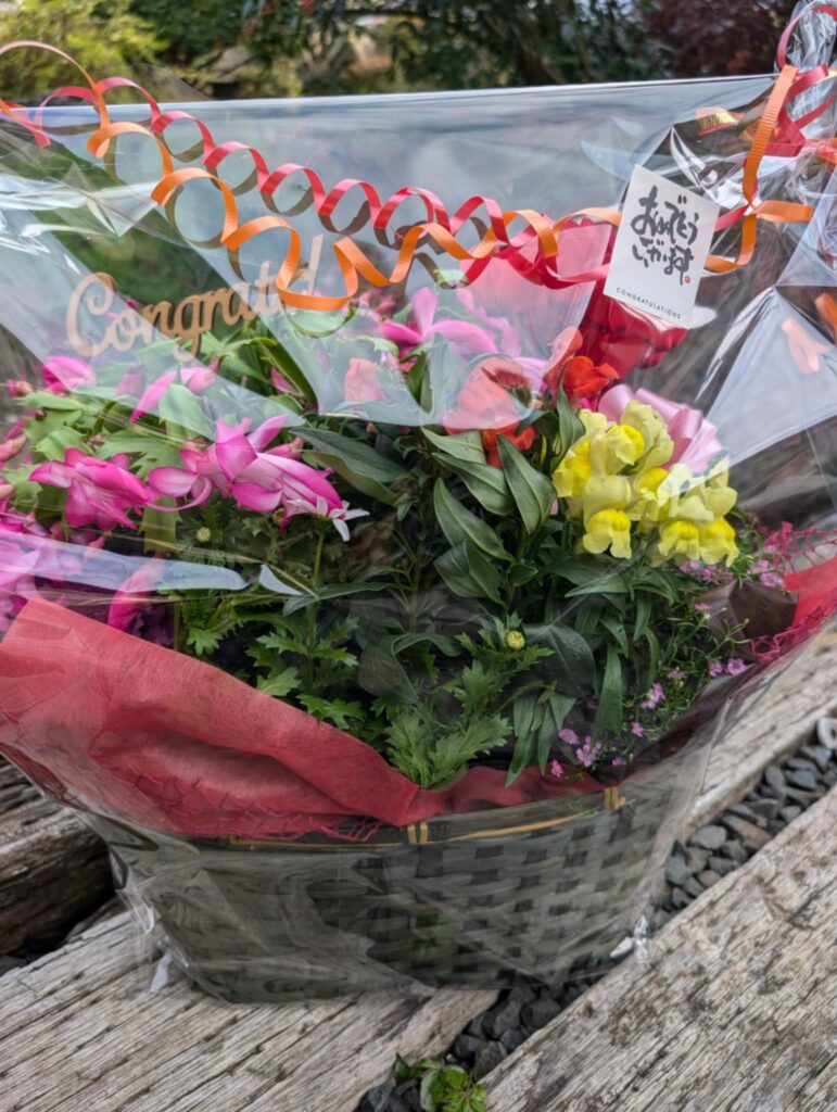 お祝いのフラワーバスケットを贈りたいと