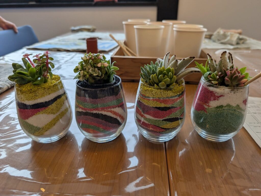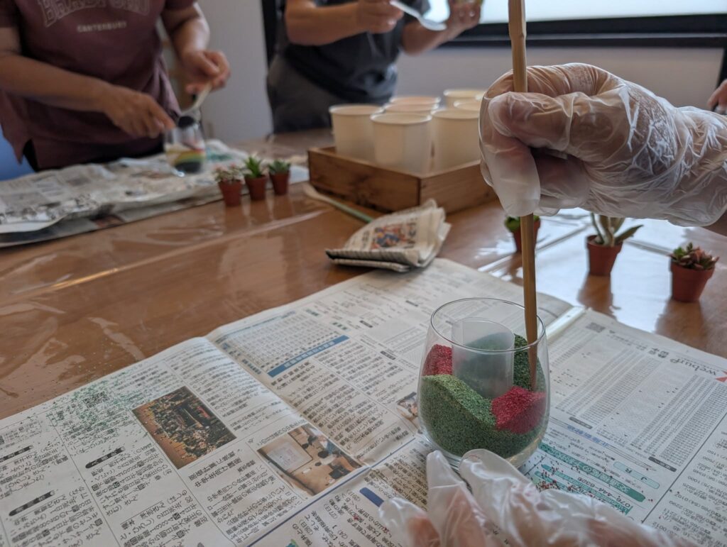 「カラーサンドを使った多肉植物の寄せ植え教室」