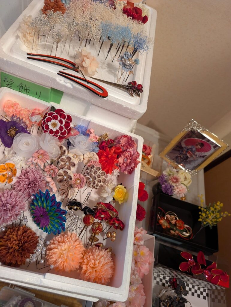 色とりどりの帯や髪飾りを選んで、