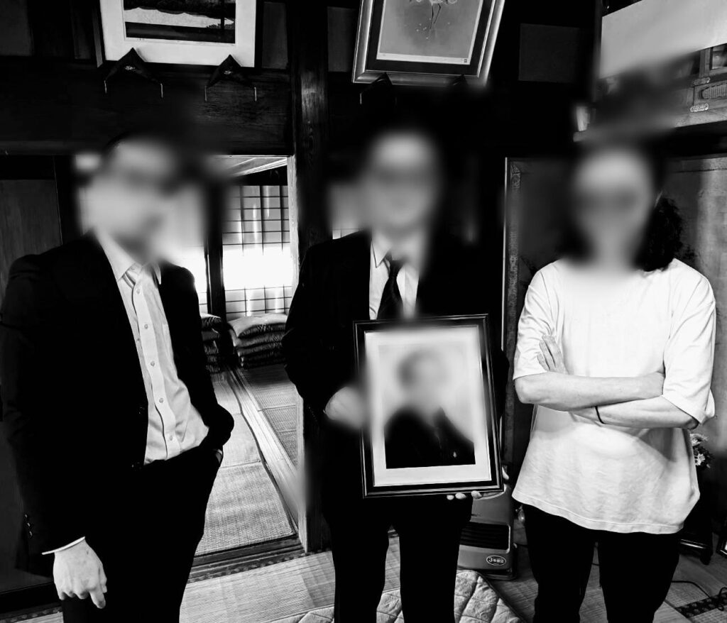 男三人(四人)で記念写真を撮っていました。