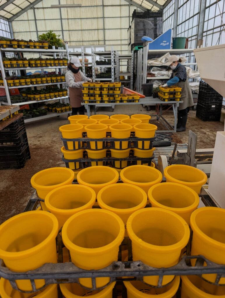 サイネリアの鉢替え作業まっただ中!!