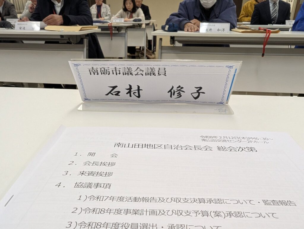 南山田地区自治会長会 総会に