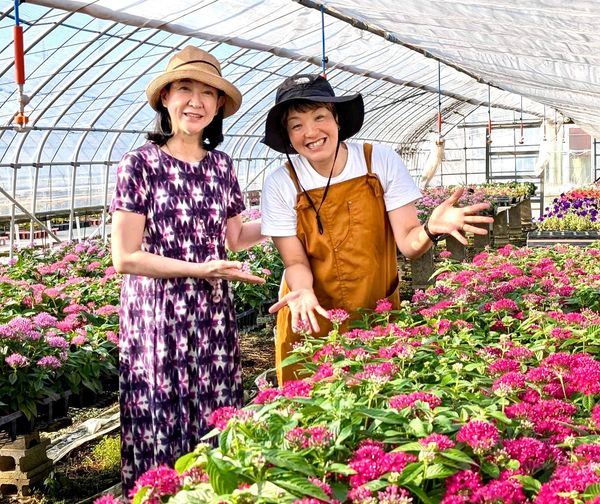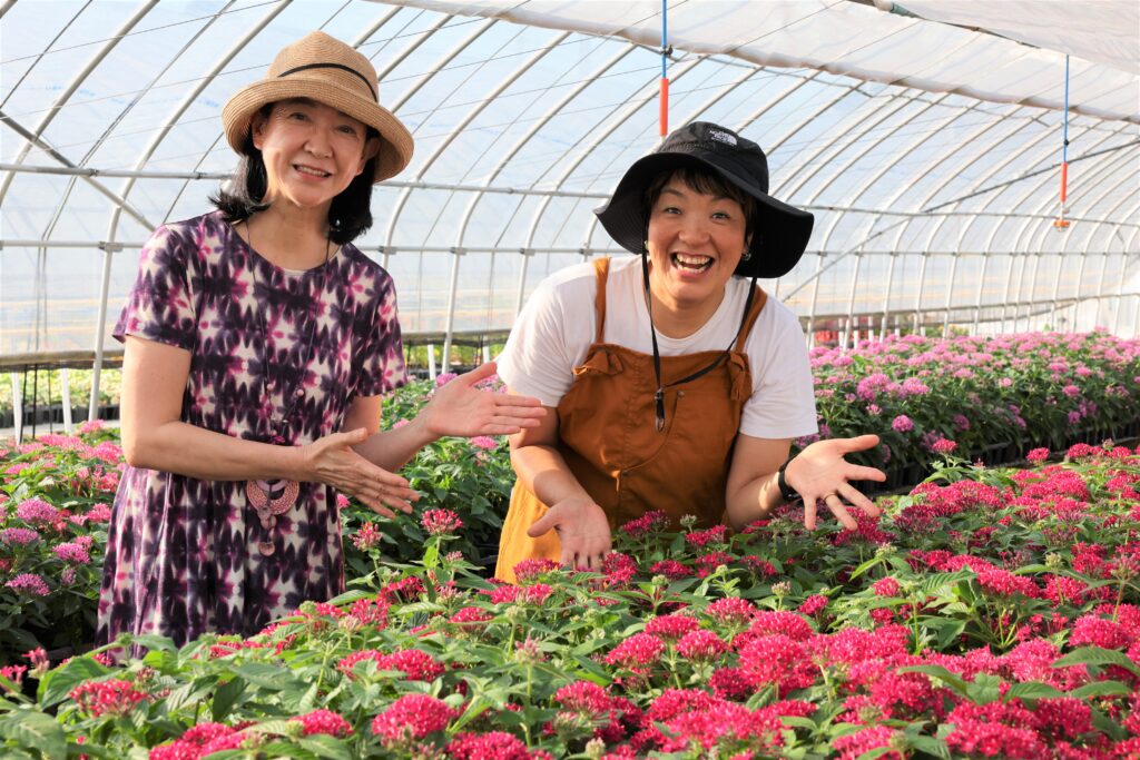 ハウス内で綺麗に咲き誇るお花たちを見て、