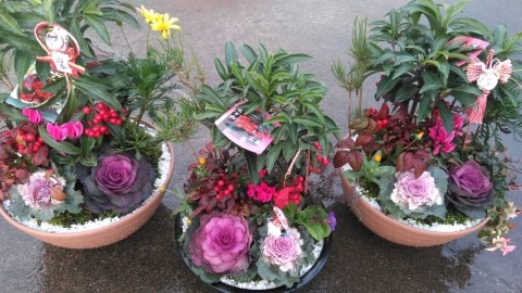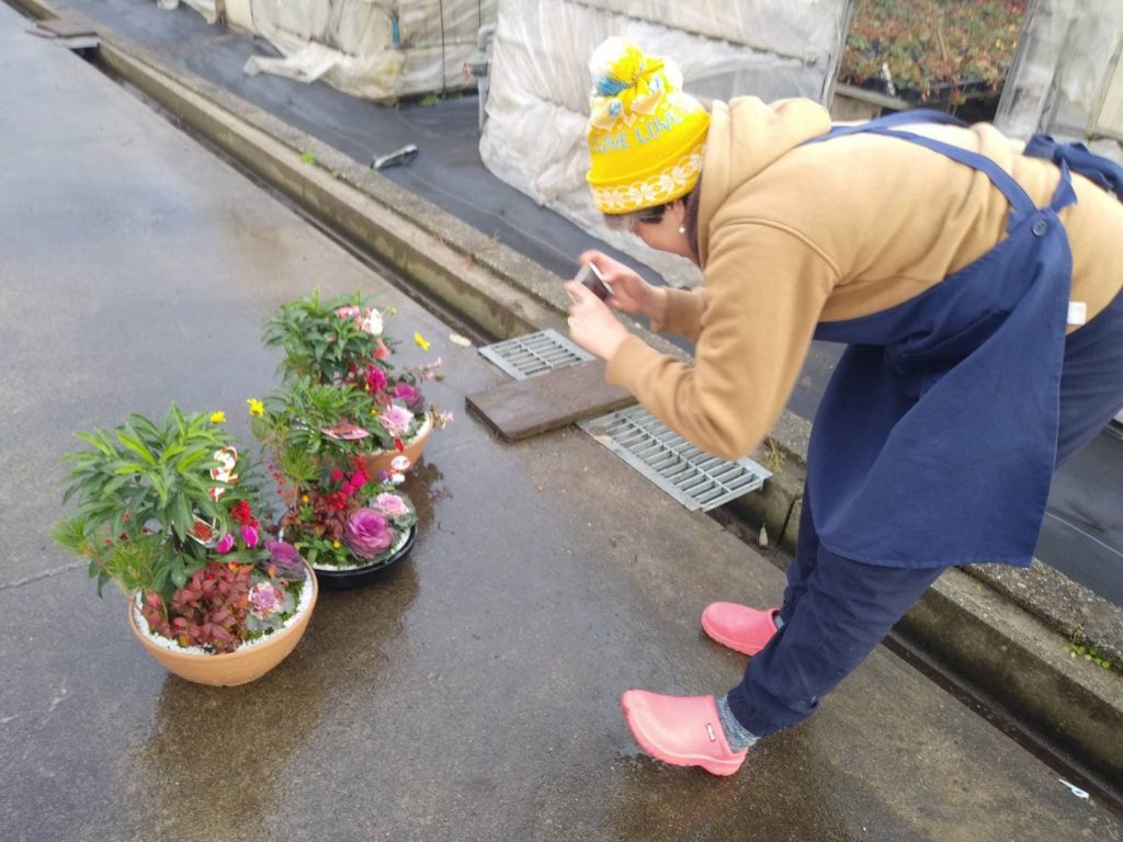 飾られた寄せ植えのお花を見て